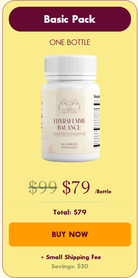 At this moment you can order ThyraFemme Balance supplement for 32% OFF + FREE Shipping. This is a Limited-Time Offer and it won’t be available for long.